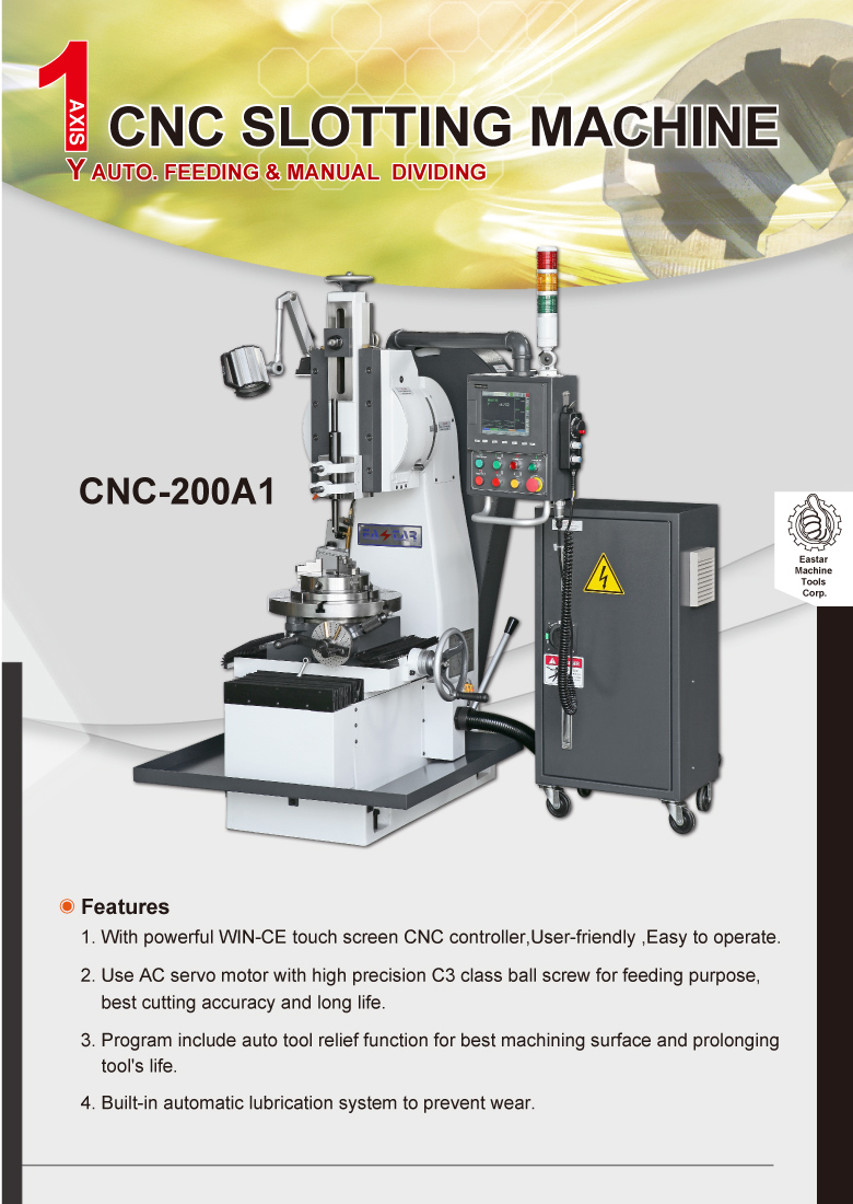 Product InformationHOME / PRODUCTS / 1 Axis Auto Slotter Product Name : 1 Axis Auto Slotter Model : CNC-200A1 Product Inquiry E-Catalog Back product manual
