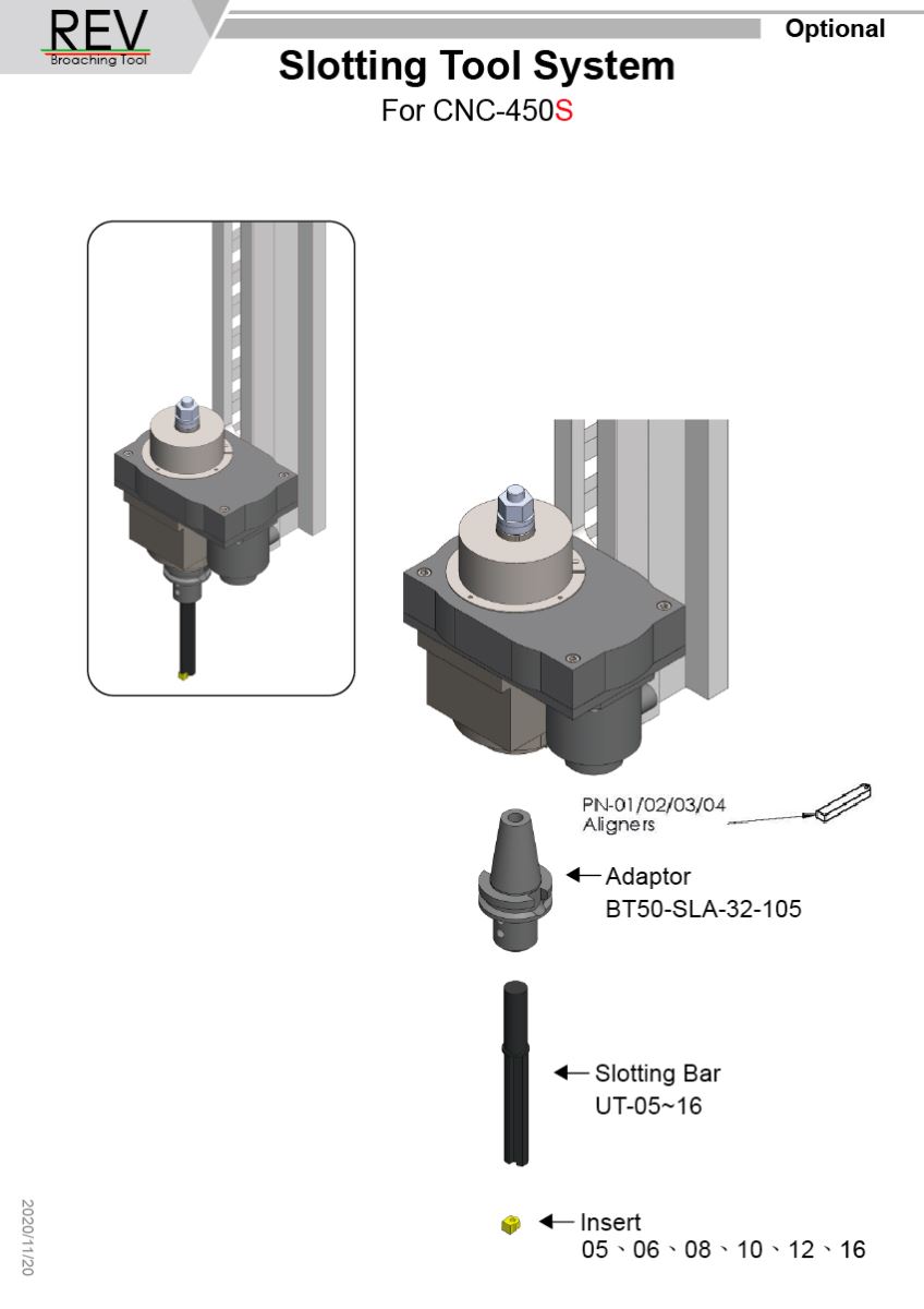 Product InformationHOME / PRODUCTS / Option:Tools fo Slotter Product Name : Option:Tools fo Slotter Model : Slotting Tool System for CNC-450S Product Inquiry E-Catalog Back product manual