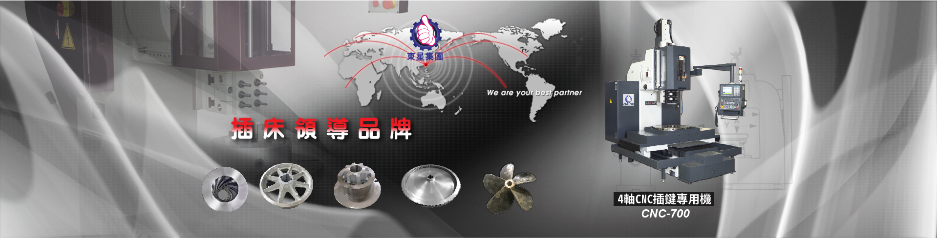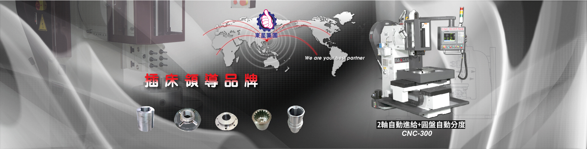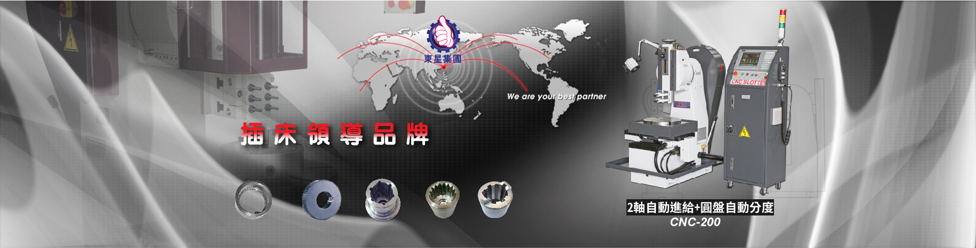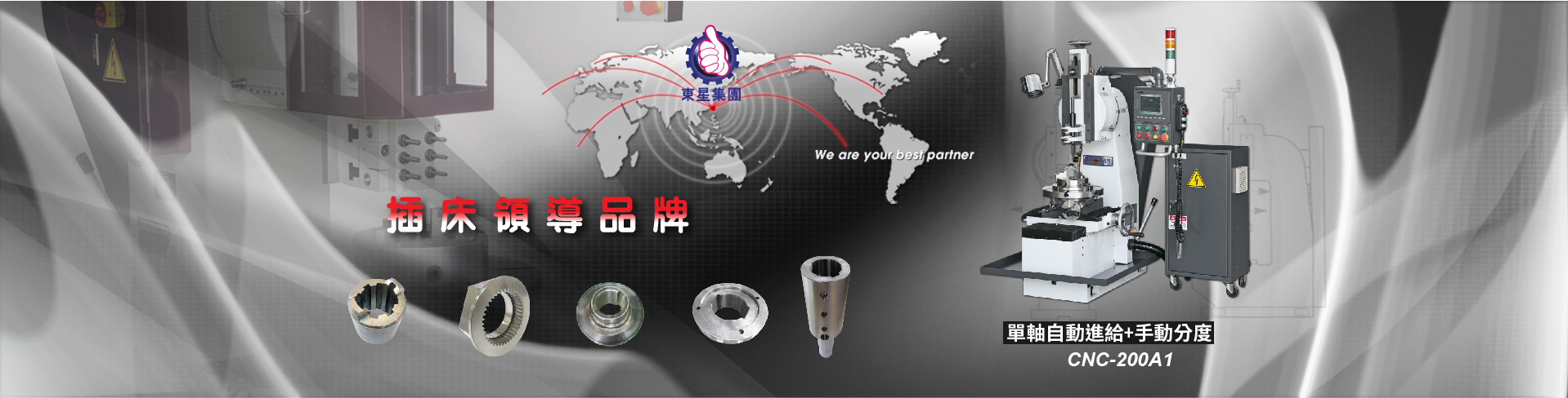 因應市場需求,我們成功跨入 CNC 自動化領域,提供多軸規格,協助客戶提升精度、效率並解決高難度鍵槽加工需求。自 2000 年起,東星亦成立專業貿易部門,提供台灣工具機與機械配件一站式採購服務,深受國際客戶信賴。